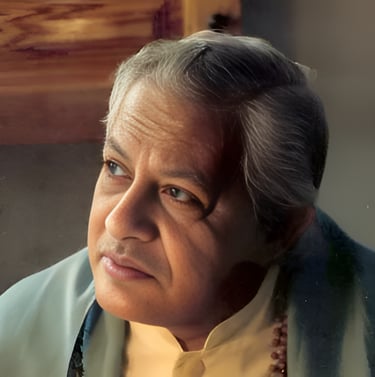 Gururaj Ananda Yogi, cuyo nombre de nacimiento fue Purushottam Narsinhram Valodia, nació en 1932 en Gujarat, India. Desde una edad temprana, mostró una profunda inclinación por lo espiritual, meditando y explorando preguntas existenciales que marcarían el rumbo de su vida. Criado en un entorno que combinaba valores tradicionales hindúes con una perspectiva abierta al mundo, Gururaj desarrolló una visión amplia e inclusiva de la espiritualidad. Su búsqueda de la verdad lo llevó a estudiar diversas tradiciones, como el hinduismo, el budismo y el sufismo, influencias que posteriormente integraría en sus propias enseñanzas.